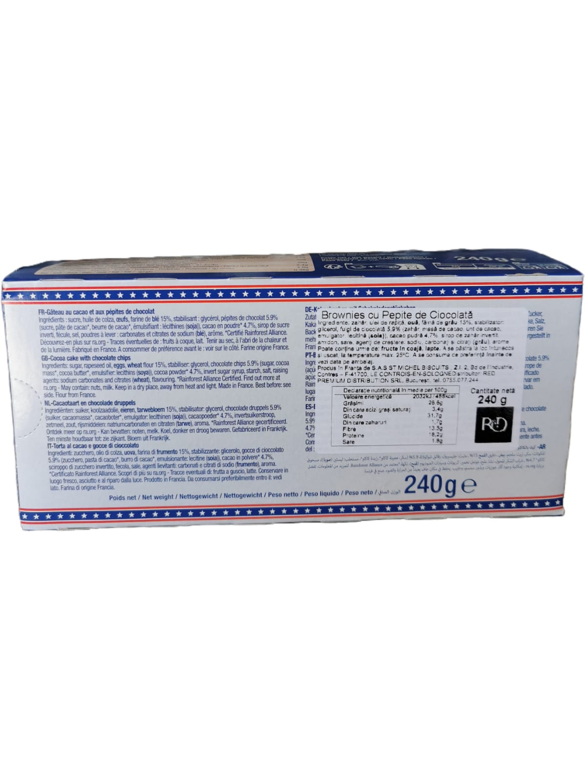 Zahăr, ouă, făină de grâu 15%, stabilizator: glicerină, pepite de ciocolată 5,9% (zahăr, pastă de cacao*, unt de cacao*, emulsifiant: lecitină [soia]), cacao pudră 4,7%, sirop de zahăr invertit, ulei de cocos, sare, agent de creștere: carbonat de sodiu, aromă.