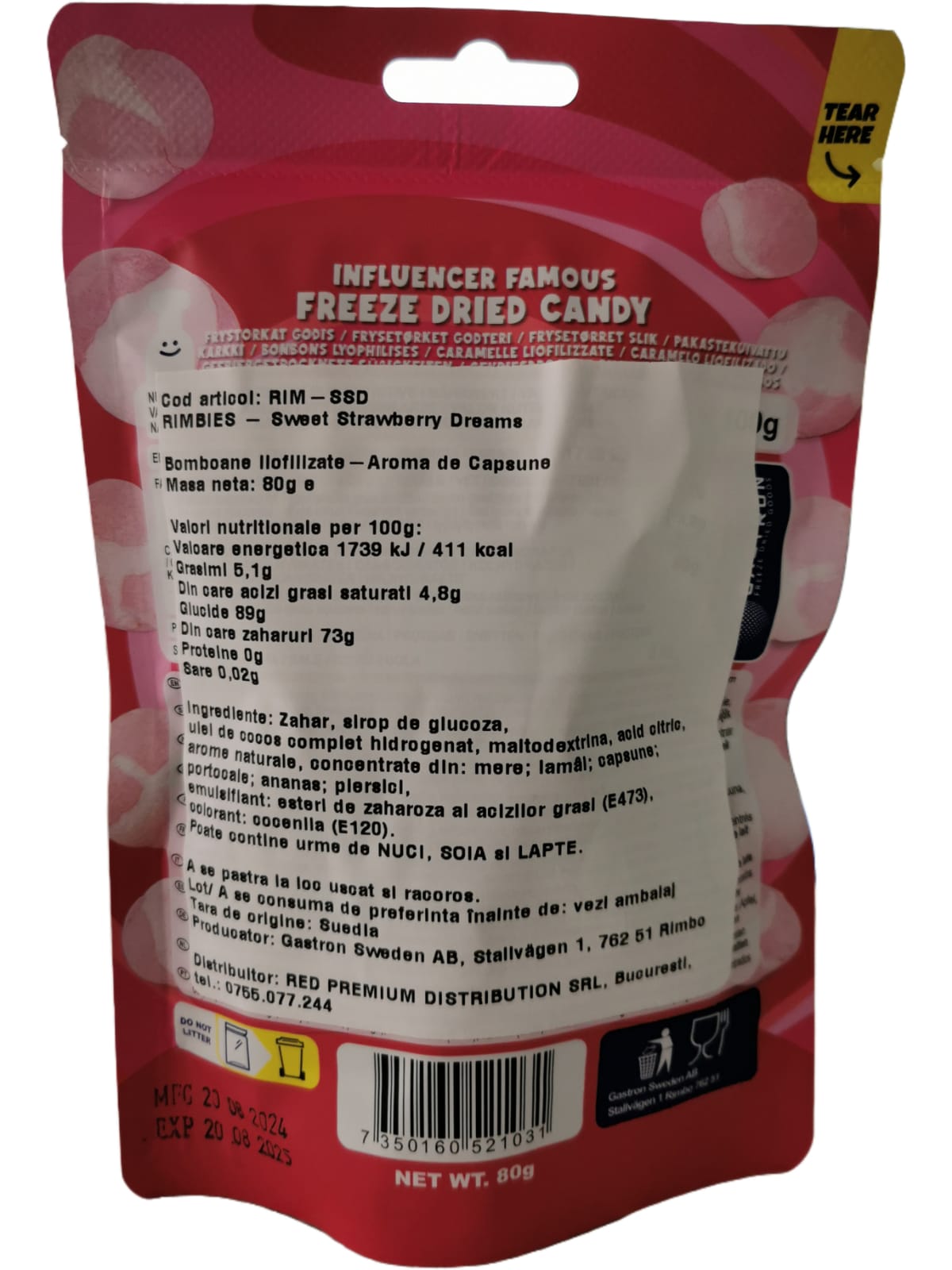 Descriere legală a produsului: BOMBOANE CU AROMĂ CĂPȘUNE 80G